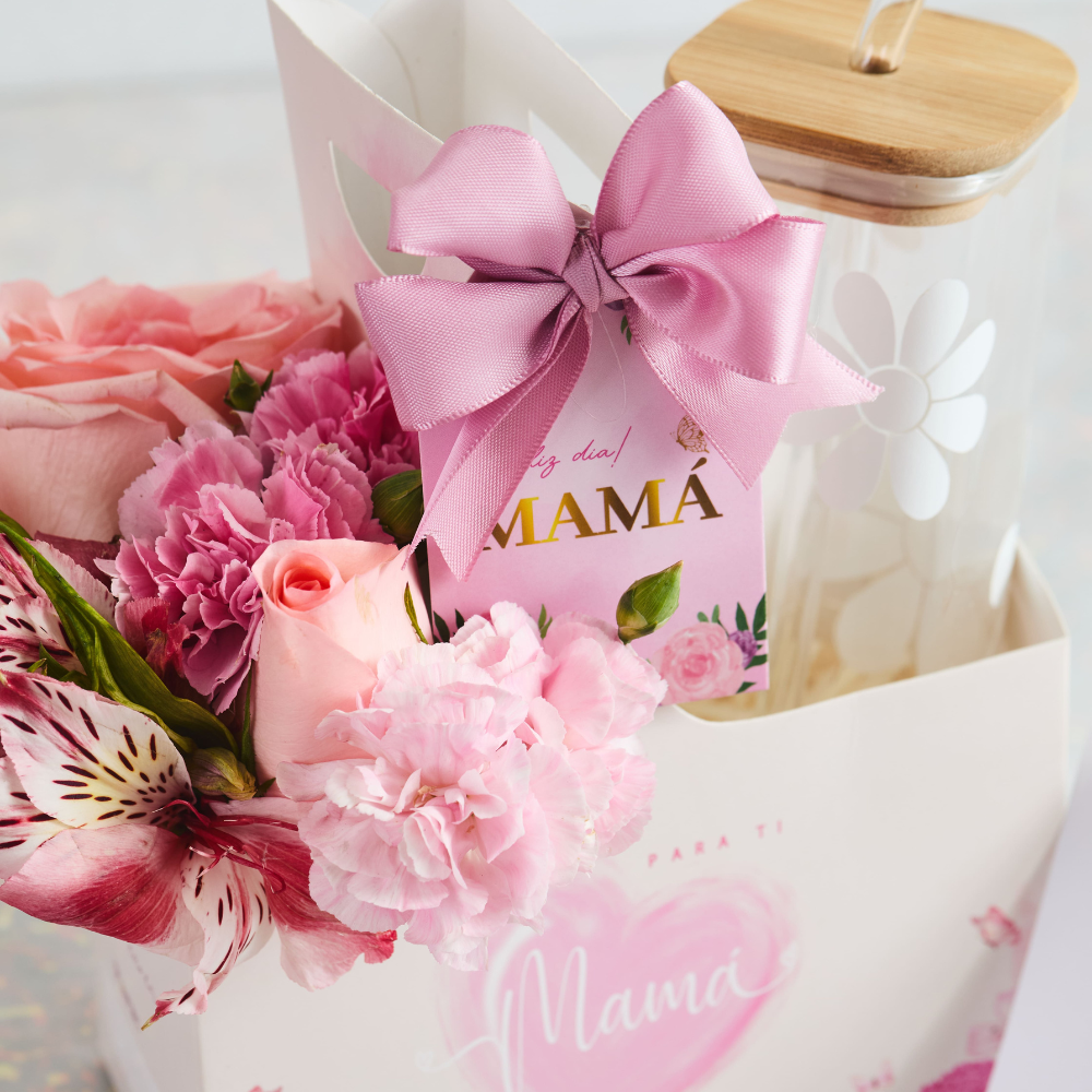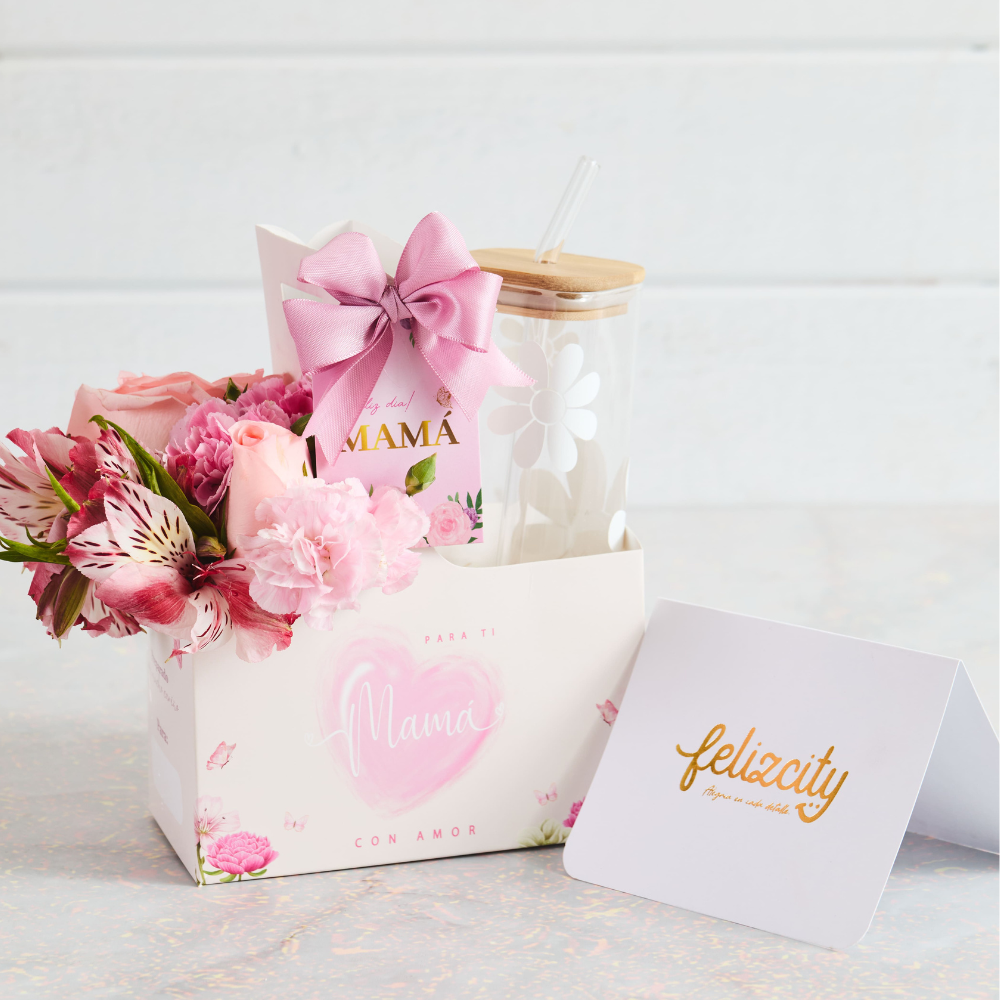 – Toma todo de vidrio templado personalizable. – 1 Ramito con variedad de flores, claveles, rosas, astromelias. – Box decorado temático.